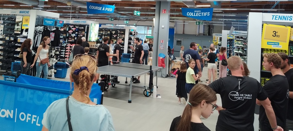 Invité par Décathlon pour animer un après-midi Ping dans le magasin de Ruaudin, Jérémy, Jean-Paul et Alain on pris place de 14h à 18h pour accueillir les clients volontaires sur les tables mises à disposition par notre partenaire.
