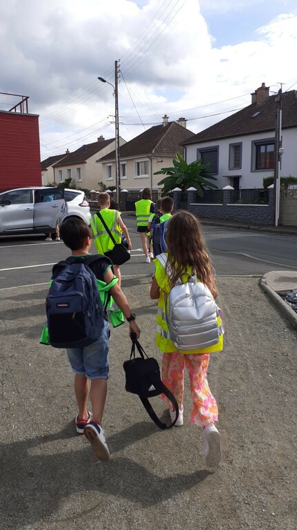 9 passagers ont profité de la nouvelle ligne de pedibus "ecole Jean de la Fontaine / salle de tennis de table Orion" mise en service mardi 12 septembre avec Philoméne à la conduite.